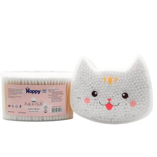Happy Cotton Buds Cat Shape Box 500pcs (Wood)