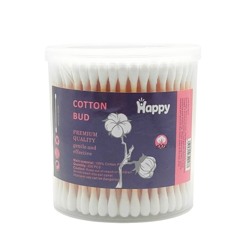 The Happy Cotton Buds Round Plastic Box contains 200 cotton buds, giving you plenty for daily use and long-term convenience.